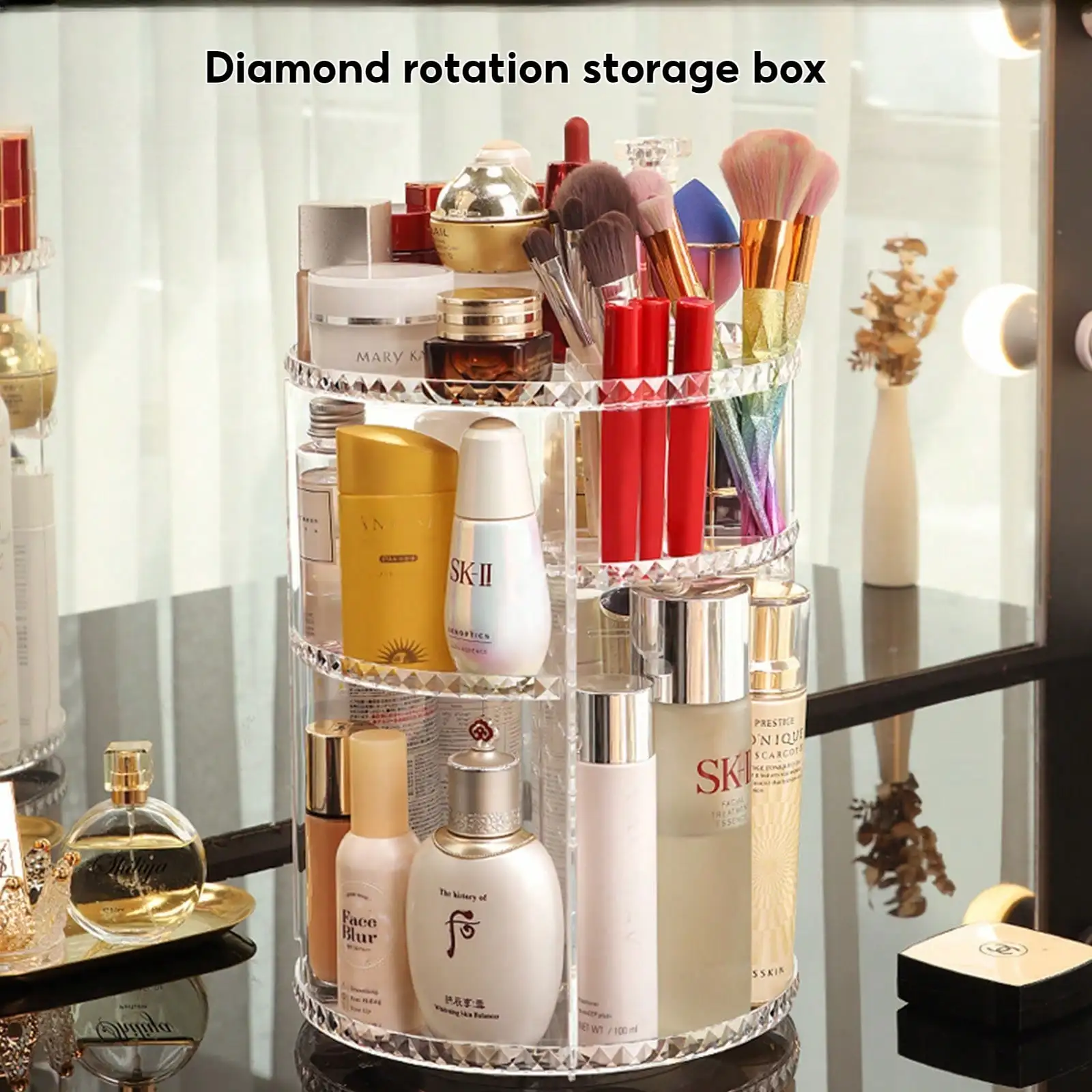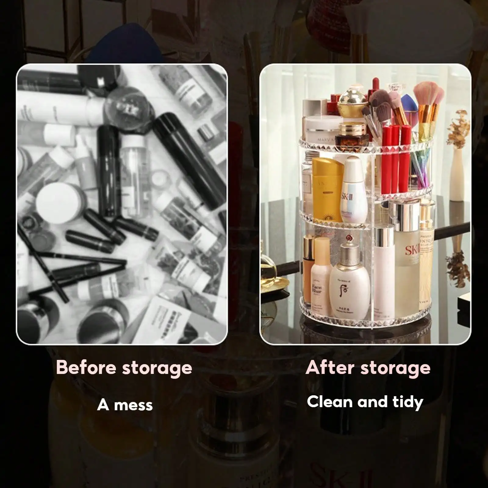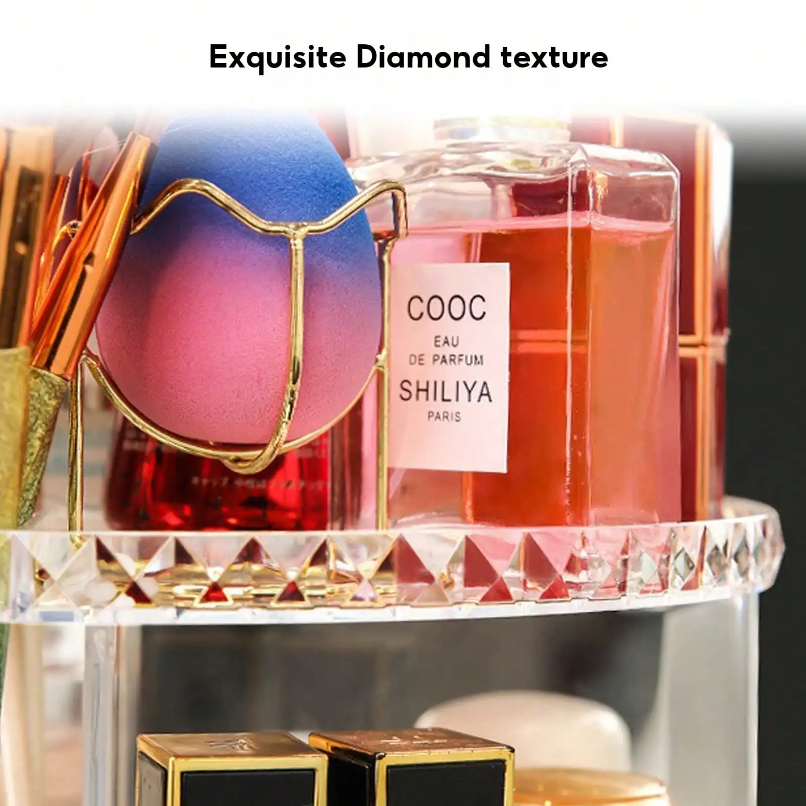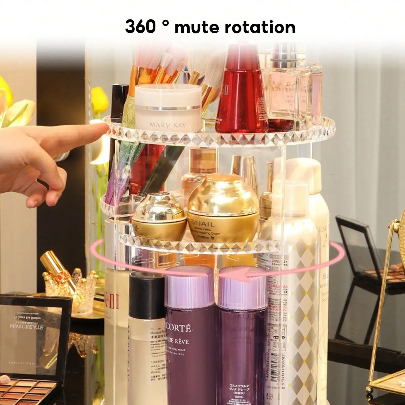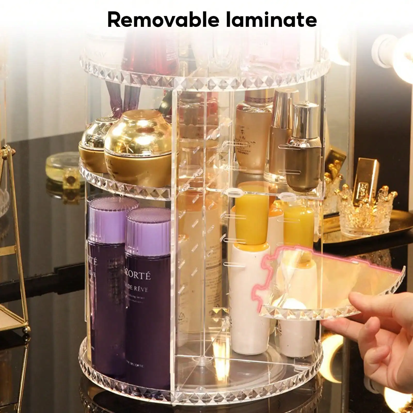 [360° ROTATING MAKEUP ORGANIZER]The skincare organizers feature 360° smoothly rotating. All of your makeup and skincare items are storaging in one clean & orderly space. Our makeup organizer can be rotated smoothly and silently, easily access to your skincare products and makeups. And The Diamond Pattern L-Shaped Combination makeup organizer is semi-rotating and semi-fixed design can be separated and combined for use to organize items into partitions.