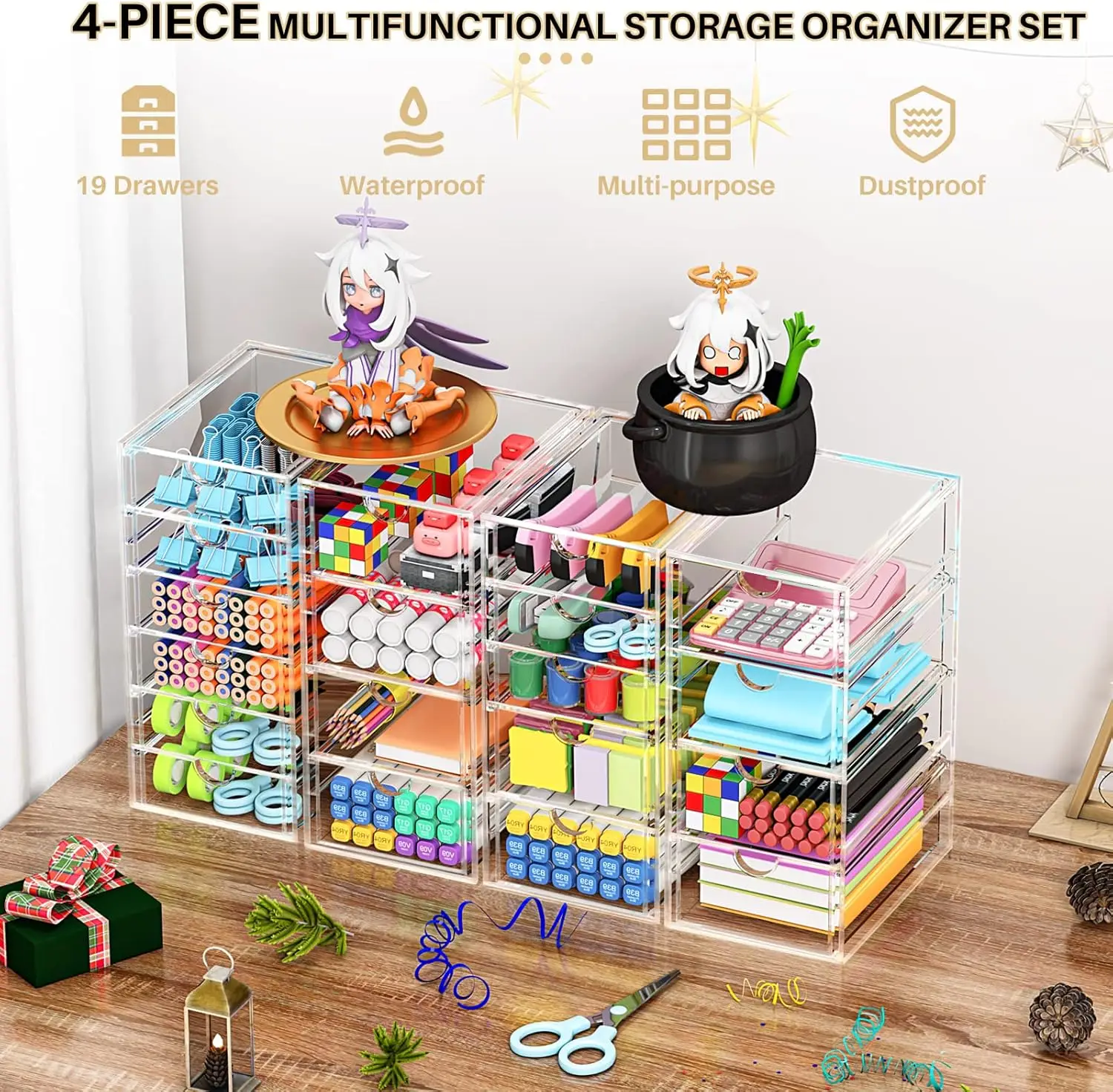 Massive 19-Drawer Capacity: Separate everything — palettes, brushes, lipsticks, skincare, jewelry — with room to grow.
